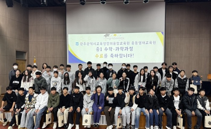 [파이낸셜경제=김예빈 기자] 광주광역시교육청창의융합교육원은 지난 15일 본원 대강당에서 중등영재교육원 중학생 141명과 학부모들이 참석한 가운데 ‘2025학년도 영재교육원 수료식’을 개최했다.