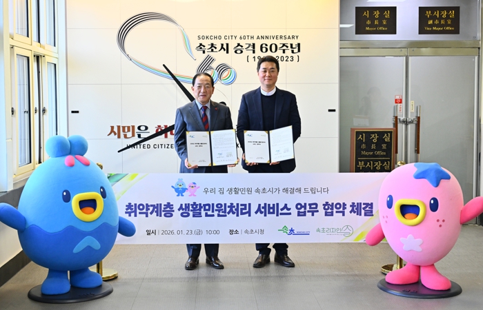 속초시는 지난 23일 속초지역자활센터와 ‘취약계층 생활민원 처리 서비스’ 추진을 위한 업무협약을 체결했다. 이번 서비스는 2026년 2월부터 본격 시행되며, 관할 동주민센터에서 신청을 받은 뒤 자격 적절성과 현장을 확인하고, 속초지역자활센터 클린리페어 자활근로사업단이 가정을 방문해 생활민원을 처리하는 방식으로 운영한다.