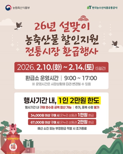 [파이낸셜경제=김영란 기자] ■ 2026년 설맞이 농축산물 할인지원 전통시장 환급행사