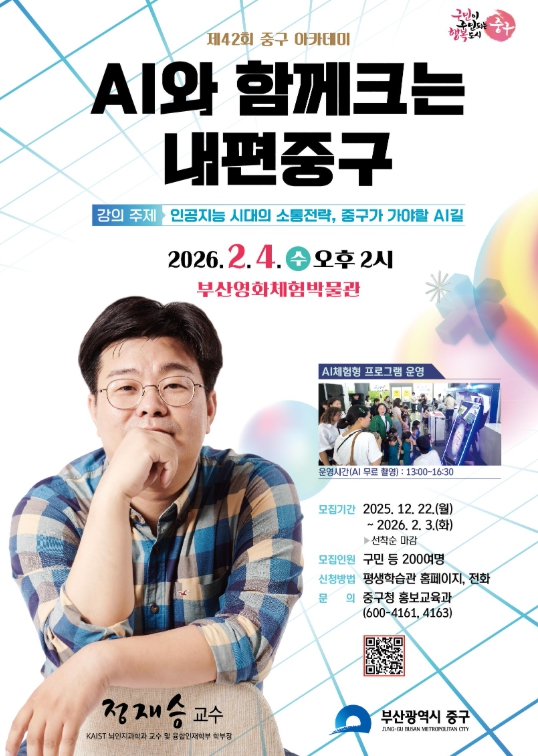 중구 관계자는 “이번 아카데미는 주민들이 생성형 AI를 직접 경험하며 다가올 AI 시대를 체감하는 기회가 될 것”이라며, “배움과 즐거움을 동시에 누릴 수 있는 뜻깊은 자리에 많은 관심과 참여를 부탁드린다”고 전했다.