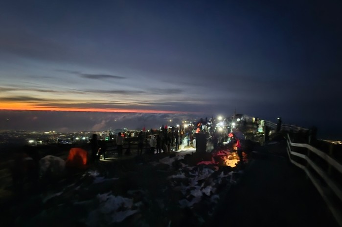 한라산도 새해를 맞는 발걸음으로 북적였다. 2026년 새해맞이를 위한 한라산 야간산행에는 정상 탐방 예약자 1,500명을 포함해 2,650여 명이 참여했다.