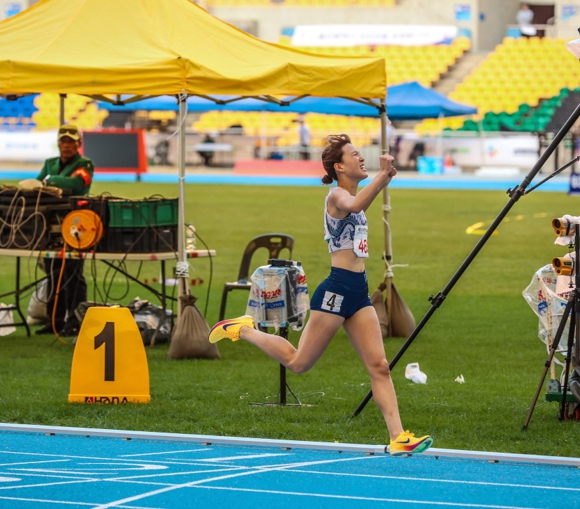 | ▲ 제106회 전국체전 육상 800m 우승후 환호하는 박해진 선수. |