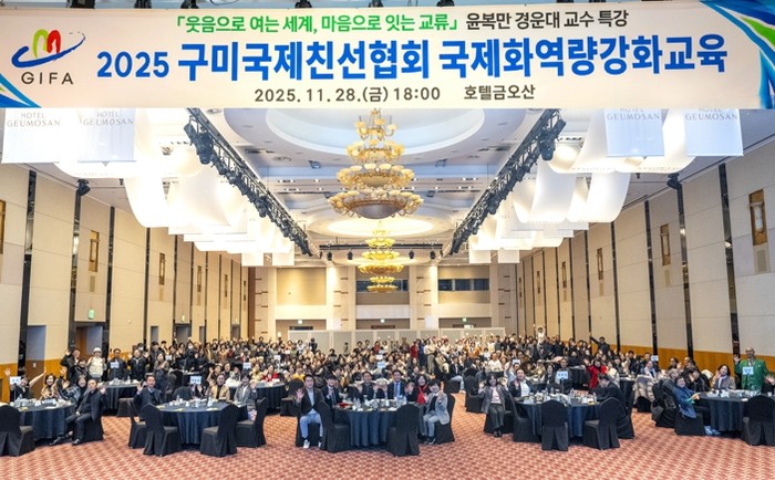 [파이낸셜경제=김지훈 기자] 구미국제친선협회는 지난 28일 호텔금오산 컨벤션센터에서 회원 200여 명이 참석한 가운데 '2025 구미국제친선협회 국제화 역량 강화교육'을 개최했다. 이번 교육은 민간 외교관으로서 필요한 글로벌 소통 역량을 높이고, 해외 방문객을 맞이하는 지역의 역할을 강화하기 위해 마련됐다.