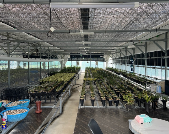 | ▲ 수출용 한국춘란을 재배 중인 온실 내부 모습 |