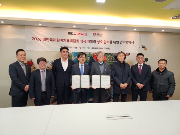 [파이낸셜경제=김영란 기자] 태안국제원예치유박람회 조직위원회는 12월 17일 서울 키자니아 본사에서 글로벌 어린이 직업체험 브랜드 키자니아 운영사인 ㈜엠비씨플레이비와 업무협약을 체결했다고 밝혔다. 이번 협약은 '2026 태안국제원예치유박람회' 개최를 앞두고 어린이와 가족 단위 관람객 유입을 확대하고, 체험 중심의 박람회 콘텐츠를 강화하기 위해 추진됐다.