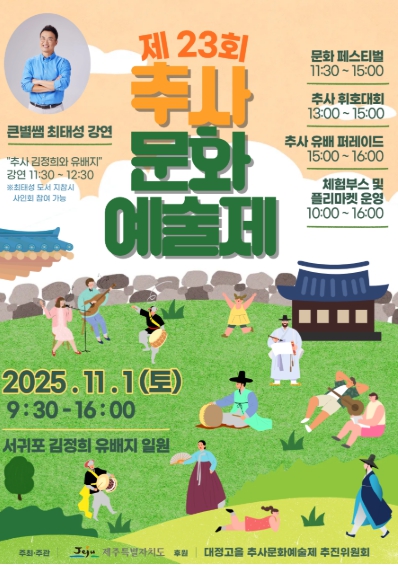 [파이낸셜경제=김영란 기자] 제주특별자치도 세계유산본부는 11월 1일 서귀포 김정희 유배지 일원에서 ‘제23회 추사문화예술제’를 개최한다.