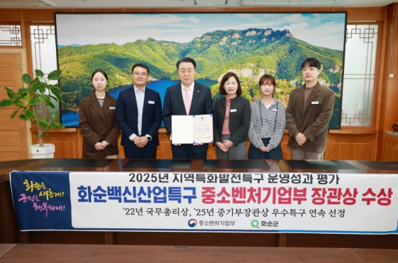[파이낸셜경제=김예빈 기자] 화순군은 중소벤처기업부에서 실시하는 '2025년도 지역특구 운영 성과 평가에서 화순백신산업특구가 ‘우수 특구’로 선정돼 중소벤처기업부 장관상의 영예를 차지했다고 10일 밝혔다.