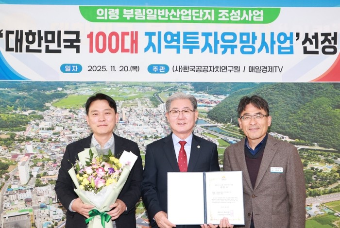 의령군은 20일 서울 중구 롯데호텔에서 열린 한국공공자치연구원과 매일경제TV 공동 주최 2025 혁신성장포럼에서 부림일반산업단지 조성사업에 대한 대한민국 100대 지역투자유망사업 인증서를 전달받았다.