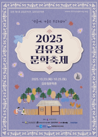 [파이낸셜경제=조성환 기자] 가을빛이 깊어가는 신동면 실레마을에 문학의 향기가 물든다. 한국 근대 단편문학의 거장 김유정을 기리는 ‘2025 김유정문학축제’가 오는 23일부터 25일까지 김유정문학촌 일원에서 열린다.