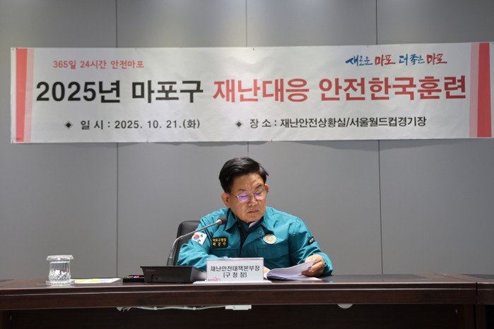 [파이낸셜경제=김예빈 기자] 마포구는 10월 21일 오후 2시, 재난안전상황실과 서울월드컵경기장 서문 일대에서 ‘2025년 재난대응 안전한국훈련’을 실시했다.