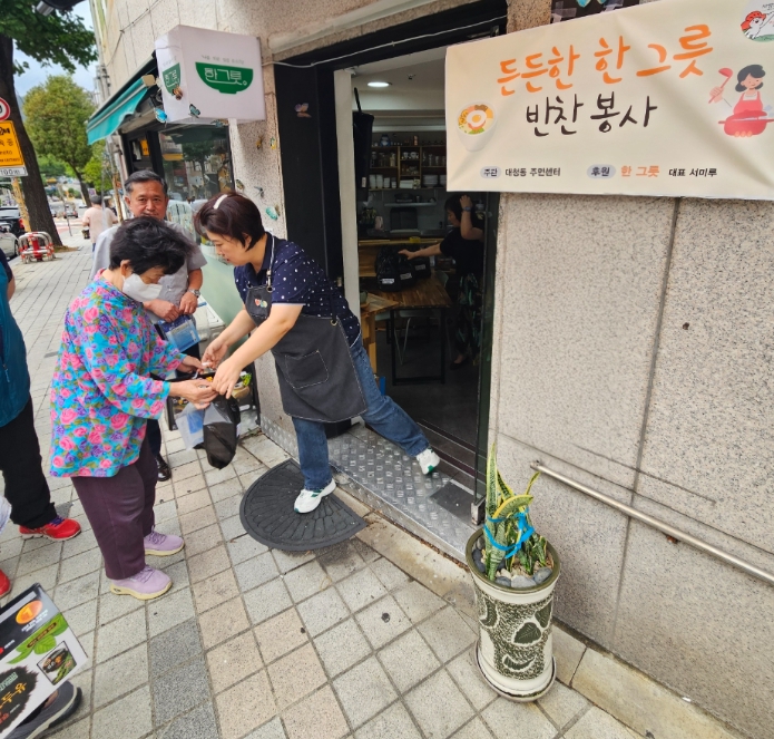 이번 나눔은 대청동 소재 음식점 ‘한 그릇’(대표 김은주)이 카레, 불고기, 버섯전 등 6가지 반찬을 직접 준비해 30세대 어르신에게 전달하며 풍성한 명절 식탁을 마련했다.