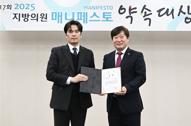 지난 12월 26일 발표된 이번 수상으로 이 의원은 2024년 ‘공약이행’분야최우수상에 이어, 2025년에는 ‘좋은조례’ 분야까지 석권하며 2년 연속 최우수상을 수상하는 기염을 토했다. 이는 이 의원이 지역 현안 해결을 위한 ‘발로 뛰는 의정활동’뿐만 아니라, 주민 삶의 질을 바꾸는 ‘정책 입법 역량’까지 갖춘 실력파 의원임을 대외적으로 인정받은 결과다.