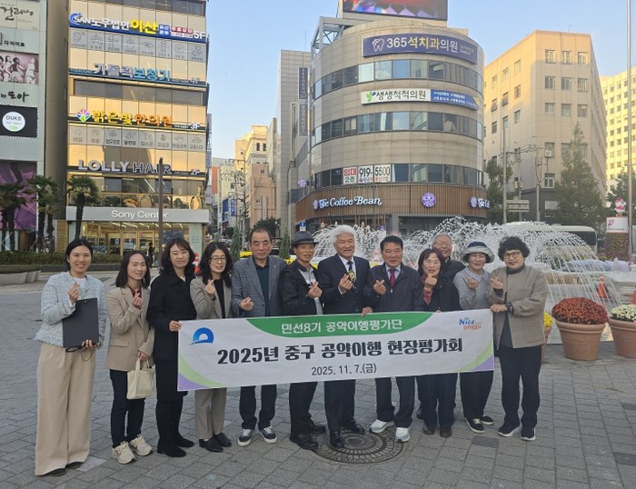 전문가와 동별 주민대표로 구성된‘중구 공약이행평가단’은 그간 공약사업 총괄사항을 보고받고 사업현장으로 이동해 공약추진 상황을 평가했다.