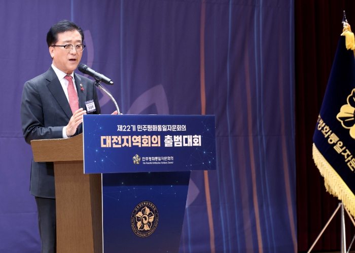 [파이낸셜경제=김영란 기자] 대전시의회 조원휘 의장은 21일 대전시청에서 개최된 제22기 민주평화통일자문회의 대전지역회의 출범식에 참석해 축하의 인사를 전하며, 대한민국의 온전한 평화와 번영을 위해 힘써주실 것을 당부했다.