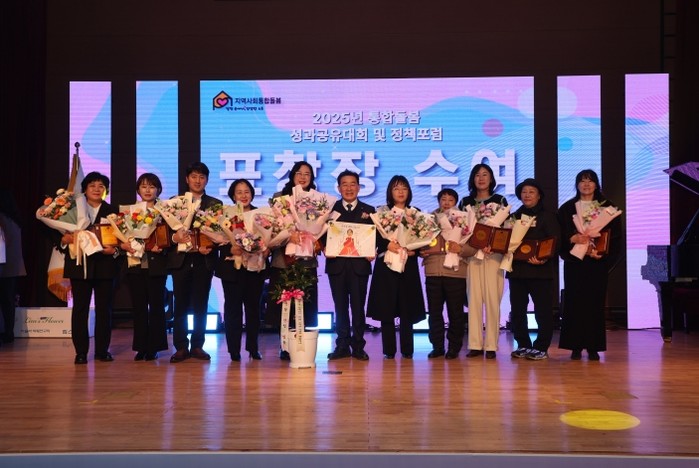 1부 성과공유대회에서는 보건복지부 지역복지사업 평가, 우수사례 공모전 수상에 따른 기관과 유공자 15명에 대한 표창(도지사 2명, 군수 10명, 군의장 3명)이 수여됐다.
