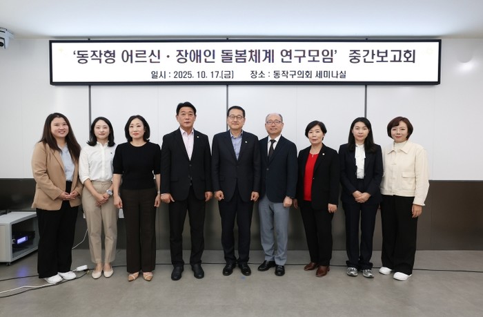 장순욱 대표의원은 “초고령사회 진입과 돌봄 수요의 다양화 속에서, 어르신과 장애인이 지역사회에서 편안하게 생활할 수 있는 돌봄체계 마련이 절실하다”며 “이번 연구가 동작구의 통합돌봄 모델을 구체화하는 계기가 되길 바란다”고 말했다.