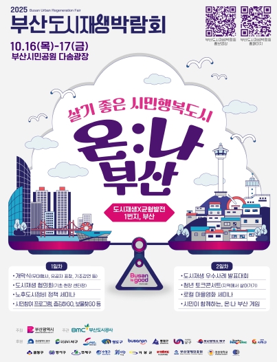 이번 박람회는 16개 부산 기초지자체와 마을공동체, 유관기관 등이 참여해 도시재생 분야의 성과와 비전을 선보이는 자리다. 세미나 및 경진대회를 비롯해 홍보부스, 프리마켓, 문화·체험 행사 등 다채로운 프로그램이 마련될 예정이다.