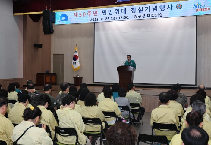 최진봉 중구청장은 기념사에서 “민방위는 국가와 구민의 안전을 지키는 중요한 제도이며, 지난 50년간 구민의 생명과 재산을 보호하는 데 크게 기여해 왔다”며 “앞으로도 구민 안전을 위해 최선을 다해달라”고 당부했다.