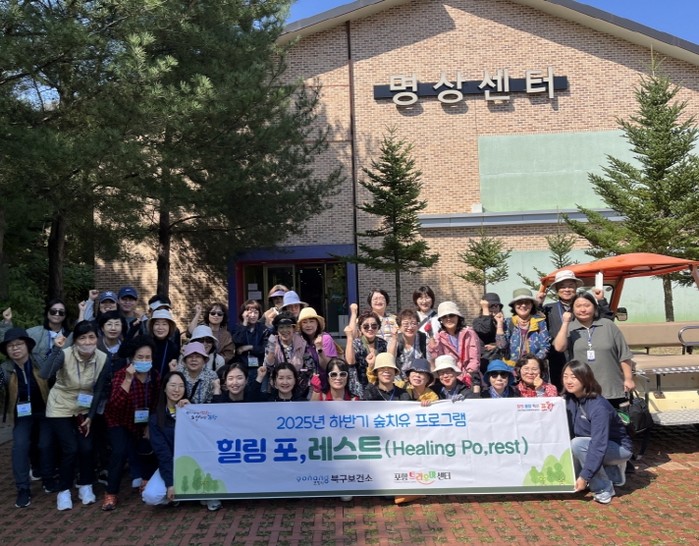 [파이낸셜경제=김지훈 기자] 포항시 북구보건소 트라우마센터는 트라우마 치유와 회복을 돕기 위해 1일 경북 영주 국립산림치유원에서 ‘힐링 포,레스트(Healing Po,rest)’ 하반기 숲치유 프로그램을 진행했다.
