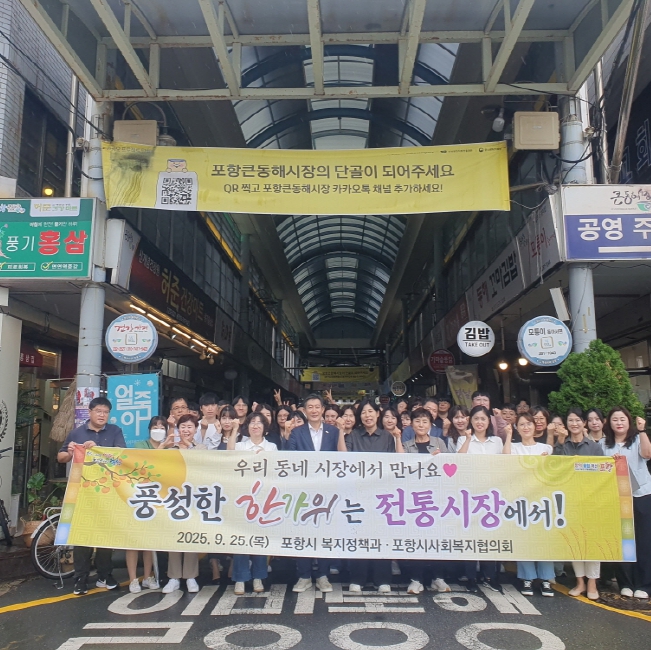 지난 9월 25일, 복지정책과와 포항시사회복지협의회 회원 50여 명은 포항큰동해시장에서 장보기를 하고 인근 식당에서 점심 식사를 함께하며 전통시장에 활기를 불어넣었다.