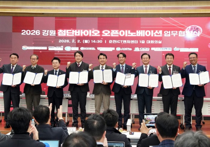 [파이낸셜경제=조성환 기자] 홍천군은 2월 2일, 강원특별자치도, 춘천시와 함께 춘천 ICT벤처 센터에서 「강원 첨단 바이오 오픈 이노베이션 프로그램」 업무협약식과 사업설명회를 개최하고, 올해부터 사업을 본격 확대 추진한다고 밝혔다.
