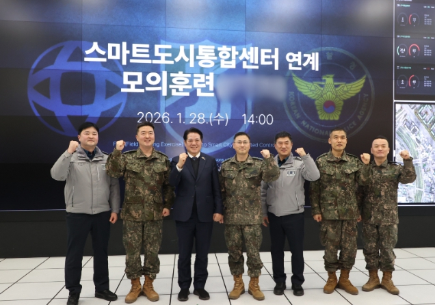 훈련은 스마트도시통합센터의 통합 관제 시시티브이(CCTV), 자동 차량 인식 장치(AVI) 및 인공지능 동선 추적 시스템(AIID)을 활용해 ▲거동 수상자 지상 추적 ▲군 헬기를 활용한 공중 미상물체 추적 ▲국가 중요 시설 인근 공중 미상물체 추적 등의 상황을 가상으로 설정해 진행됐다. 훈련 과정에서는 지상과 공중을 연계한 비상 대응 역량을 강화하는 데 중점을 뒀다.