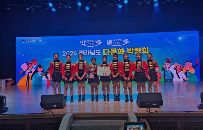 [파이낸셜경제=김예빈 기자] 전남 곡성군은 지난 27일 화순 하니움문화스포츠센터에서 개최된 ‘2025년 전라남도 다문화 박람회’의 전라남도 문화예술 경연대회에서 곡성지역아동센터의 어린이 난타 “투드림 난타팀”이 우수상을 받았다고 전했다.