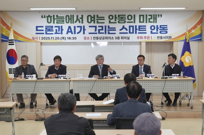 [파이낸셜경제=김지훈 기자] 안동시의회는 11월 20일 16시, 안동 상공회의소 3층 회의실에서“하늘에서 여는 안동의 미래, 드론과 AI가 그리는 스마트 안동”를 주제로 정책토론회를 개최했다.