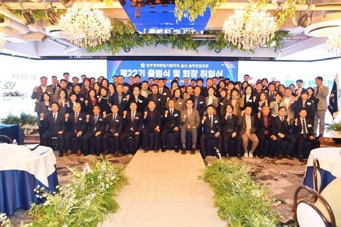 | ▲ 제22기 민주평화통일자문회의 울주군협의회(회장 김한준)가 25일 보람컨벤션에서 이순걸 울주군수와 울주군의회 최길영 의장 및 군의원, 김한준 신임회장과 회원들이 참석한 가운데 출범식을 가졌다. |