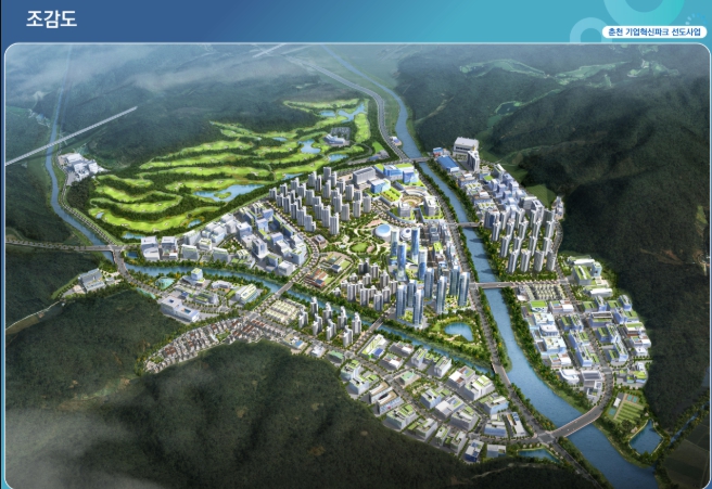 ‘춘천 기업혁신파크 조성사업’은 남산면 광판리 산 68번지 일원(363만㎡, 약 110만 평) 부지에 총사업비 약 1조 1,031억 원이 투입되는 대규모 프로젝트다. 특히 IT·AI·정밀의료 등 첨단 산업 분야를 집중 유치해 춘천의 기존 바이오 산업 성공모델을 새로운 산업 생태계로 확산시킨다는 목표다. 첨단산업 입지 함께 주거, 교육, 의료, 문화, 상업‧업무 등 자족적 복합기능을 갖춰 판교를 뛰어넘는 첨단산업 클러스터 기업도시를 조성할 계획이다.