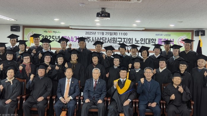 [파이낸셜경제=김기보 기자] (사)대한노인회 청주시상당서원구지회 부설 노인대학은 25일 지회 회의실에서 제44기 노인대학 졸업식을 개최했다.
