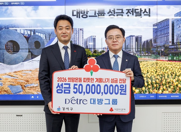 강서구 마곡지구에 둥지를 튼 대방그룹은 지난 2008년부터 꾸준히 이웃사랑을 실천하고 있다. 지난해에도 이웃돕기 성금 5천만 원을 기부했으며, 현재까지 누적된 성금은 총 5억 5천만 원에 달한다.