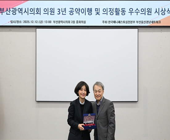 [파이낸셜경제=박영진 기자] 부산광역시의회 김효정 의원(국민의힘, 북구 만덕·덕천)이 2025년 연말, 주요 의정 평가 상을 잇따라 수상하며 북구 출신 시의원 가운데 ‘최다 수상’이라는 독보적인 기록을 달성했다. 중앙과 지방, 유권자 단체를 아우르는 평가 기관들로부터 연이어 대상을 수상하며, 연말 의정 평가를 사실상 “싹쓸이”했다는는 평가를 받고 있다.