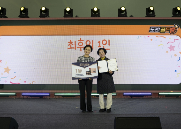 마지막 라운드는 ‘최후의 1인 골든벨을 울려라’ 형식으로 치러졌으며, 강서구종합사회복지관 성인문해반의 권영숙, 전순자 학습자가 끝까지 남아 치열한 도전을 이어갔다. 특히 전순자(77세, 강서구 대저1동) 학습자는 최종 문제의 정답을 맞히며 관람객들의 뜨거운 박수와 환호 속에서 골든벨을 힘껏 울렸다.
