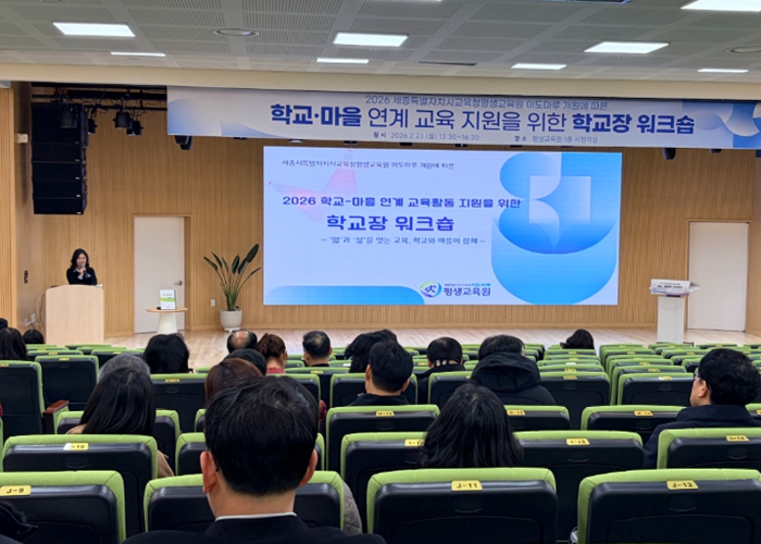 [파이낸셜경제=김영란 기자] 세종특별자치시교육청평생교육원은 2월 23일 평생교육원 이도마루에서 세종시 초중고·특수·각종학교 학교장을 대상으로 ‘2026년 학교·마을 연계 교육활동 지원을 위한 교육 협력 워크숍’을 개최했다.