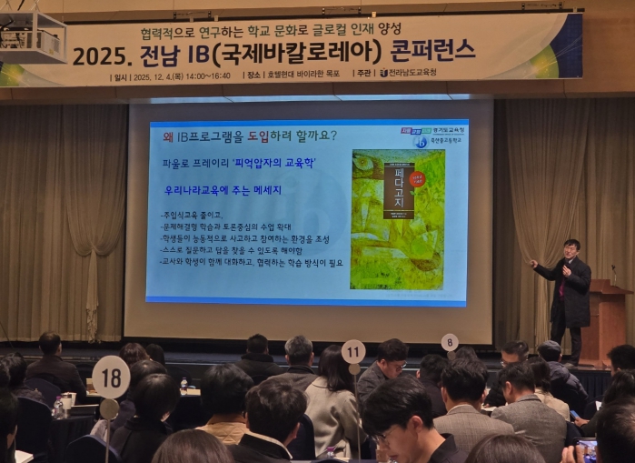 이러한 정책 방향 공유를 위해 전남교육청은 4일 영암에서 ‘2025 전남 IB 콘퍼런스’를 개최했다. 행사에는 IB 운영학교, 연구회, 일반학교 교원 등 250여 명이 참석해 IB 프로그램 운영 방향과 2026년 공모 계획을 함께 논의했다.