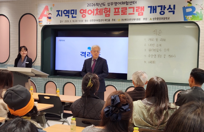 [파이낸셜경제=김지훈 기자] 경상북도 성주교육지원청 산하 성주영어체험센터는 지역민의 영어 의사소통 능력 향상과 평생학습 문화 확산을 위해 '2026학년도 지역민 영어 회화 프로그램' 개강식을 성주영어체험센터 메인홀에서 개최했다.
