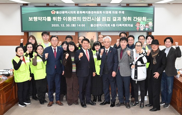 [파이낸셜경제=김예빈 기자] 울산광역시의회 문화복지환경위원회 이영해 의원은 30일 오후 2시 4층 다목적회의실에서 '보행약자를 위한 이동편의 안전시설 점검 결과 청취 간담회'를 개최하고, 보행약자의 안전한 이동환경 조성을 위한 개선방안을 논의했다.