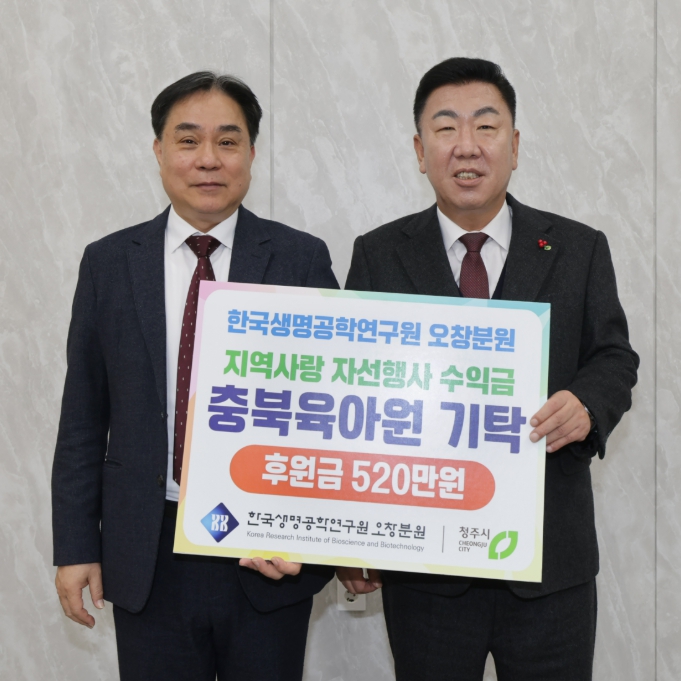 이번 후원금은 지난 12월 10일 한국생명공학연구원 오창분원에서 열린 지역사회 나눔 자선행사에서 직원들이 자발적으로 기부한 수익금으로 마련됐다.