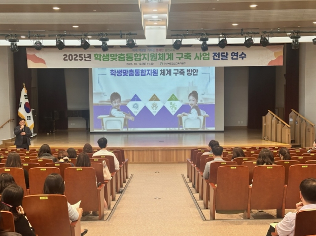[파이낸셜경제=김지훈 기자] 경상북도 김천교육지원청은 10월 13일 월요일, 김천학생문화예술센터 드림마루에서 관내 52개 초‧중‧고등학교 행정실장 및 업무담당자를 대상으로 2025년 학생맞춤통합지원체계 구축을 위한 전달 연수를 개최했다.