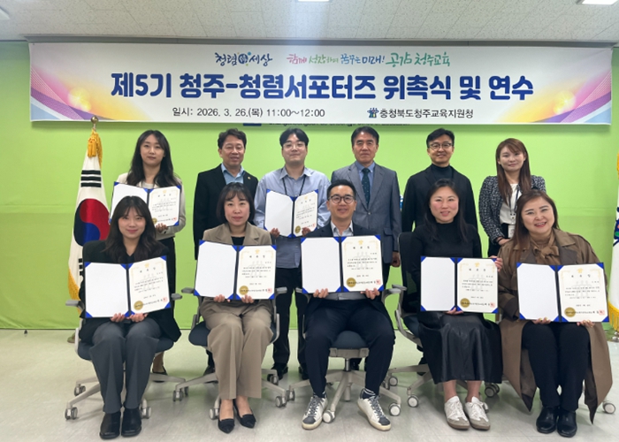 [파이낸셜경제=김기보 기자] 충청북도청주교육지원청은 2026년 3월 26일 청렴 문화 확산 및 청렴 실천 분위기 조성을 위해 ‘제5기 청렴서포터즈 위촉식 및 연수’를 실시했다.