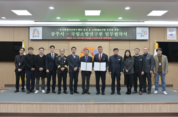 최원철 시장은 “이번 협약은 공주가 K-화재안전을 선도하는 도시로 도약하는 결정적 전환점이다. 국가화재안전기준 연구센터가 들어서면 공주는 소방·재난 연구의 핵심 기능을 수행하는 전국 유일의 혁신 거점이 된다”며, “앞으로 국립소방연구원과 긴밀히 협력해 공주를 국가와 지역이 함께 성장하는 소방·재난 연구의 중심지로 완성해 나가겠다”고 강조했다.