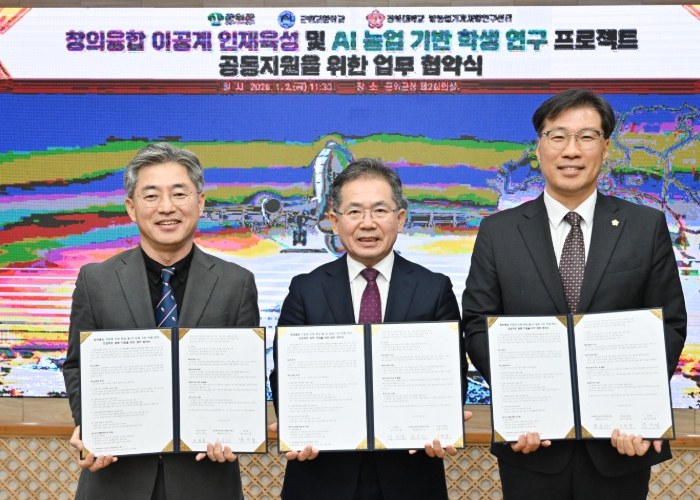 [파이낸셜경제=김지훈 기자] 군위군이 1월 2일 군청 제2회의실에서 군위고등학교, 경북대학교 밭농업기계개발연구센터와 함께 창의융합 이공계 인재 육성 및 AI 농업 기반 이공계 인재 육성을 위한 학생 연구 프로젝트 공동 지원 업무협약을 체결했다.