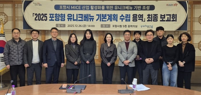 [파이낸셜경제=김지훈 기자] 포항시는 26일 시청 중회의실에서 2025 포항형 유니크베뉴(PUV) 기본계획 수립용역 최종보고회를 개최했다.