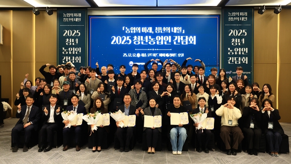 금번 간담회는 2025년 한 해 동안 활동한 제2기 2030 자문단의 활동을 마무리하는 자리이면서, 새롭게 위촉된 제3기 2030자문단의 출발을 알리는 자리이다. 아울러, 「2025 청년농업인 영농정착 우수사례 수기공모」에서 영농정착분야 및 영농혁신분야 최우수상을 수상한 청년농업인과 지역기반 청년농업인 네트워크 팀프로젝트 대상 수상팀 「The leaf」(더 리프)에 대한 농식품부 장관상 시상도 진행됐다.