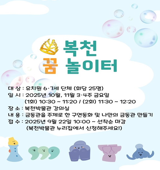 성현주 복천박물관장은 “발달 단계별 맞춤 박물관 교육을 통해 유아 시기부터 우리 역사와 문화에 대한 관심을 높일 수 있도록 기획한 프로그램”이라며, “앞으로도 다양한 연령대를 아우르는 참신하고 유익한 교육 프로그램을 지속적으로 개발 운영함으로써 복천박물관이 지역 사회의 문화교육 거점 역할을 충실히 할 수 있도록 하겠다”라고 전했다.