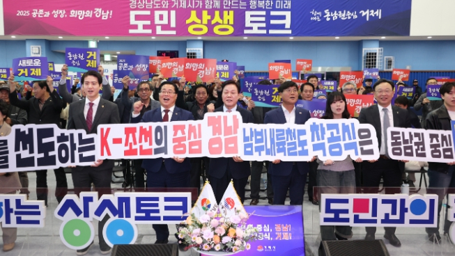 [파이낸셜경제=김예빈 기자] 경상남도는 18일 거제 반다비체육센터에서 열린 ‘도민 상생토크’에서 기업혁신파크, 광역교통망, 미래산업 등을 연계한 성장전략을 제시하며 지원 의지를 밝혔다.