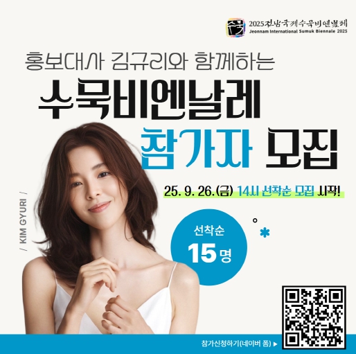 [파이낸셜경제=김예빈 기자] 2025 전남국제수묵비엔날레는 홍보대사 김규리와 함께하는 특별 프로그램 ‘전시관람&티타임’을 오는 10월 1일 목포 문화예술회관에서 진행한다고 밝혔다.