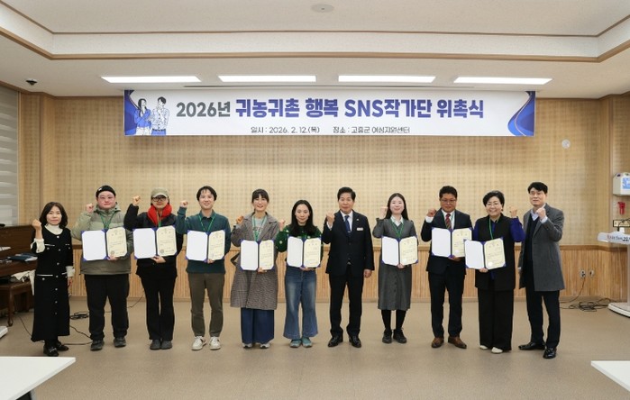 [파이낸셜경제=김예빈 기자] 고흥군은 12일 도시민 유치와 군정 홍보 강화를 위해 ‘2026년 귀농·귀촌 행복 SNS 작가단’ 10명을 위촉하고 본격적인 활동에 들어갔다고 밝혔다.