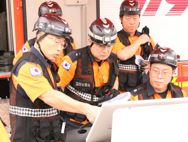 김천소방서 주관으로 실시된 이번 훈련은 실제 발생할 수 있는 대규모 재난에 대비해 긴급구조 대응과 현장 통제 역량 강화를 위하여 실시한 훈련으로 신고접수를 시작으로 단계별 메시지 부여에 따른 상황전파, 선착대 및 긴급구조지휘대 활동, 긴급구조통제단 현장 지휘 체계 구축 단계까지 일련의 과정을 체계적으로 수행했다.